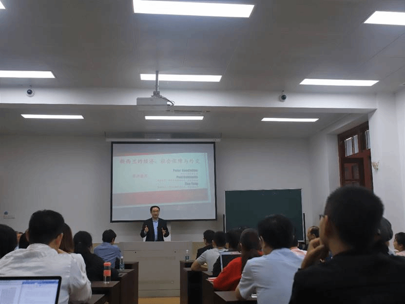 针对讲座主题,国家党国会议员、前科学与创新部长Paul Goldsmith介绍了新西兰国家的地理状况,新西兰是南太平洋的一个国家,位于太平洋西南部,和澳大利亚相邻,首都惠灵顿以及最大城市奥克兰均位于北岛;还向同学们介绍了新西兰的人口、新西兰极具优势的社会福利政策以及留学生福利政策。同时,Paul Goldsmith还指出,现在新西兰极具争议性的话题是退休年龄调到65岁是否合理。当问到现场有多少人去过新西兰的时候,他非常自信的说:“You would like it very much.“