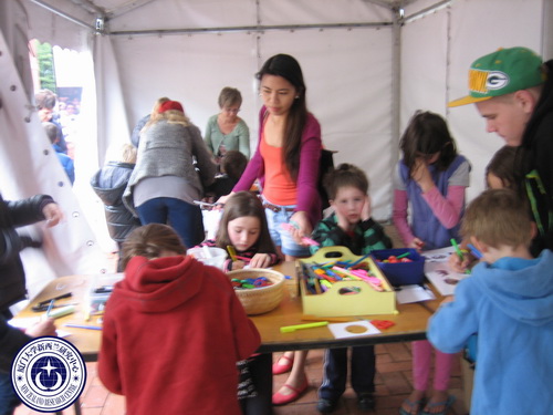 志愿人员为孩子绘画加工个性徽章