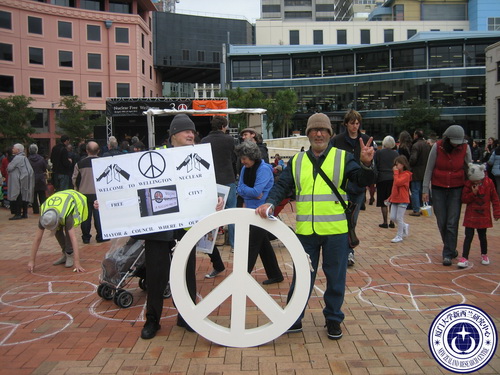 4月14日下午,为纪念惠灵顿《惠灵顿无核区首都宣言》(Wellington’s Nuclear Weapon Free Declaration,1982年4月14日)发布30周年。惠灵顿市政府理事会(Wellington City Council)与当地佛教团体国际创价学会(Soka Gakkai International,SGI)在市政广场共同组举行了纪念活动。