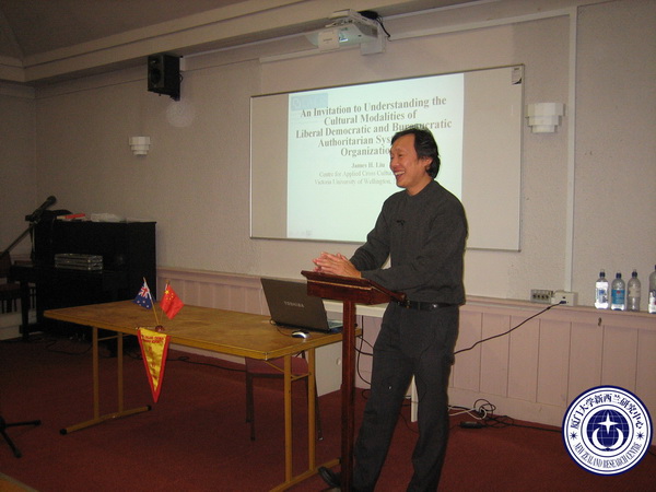 4月18日下午,“新西兰―中国友好协会”在Hill Street的Connoly Hall邀请维多利亚大学James Hou-fu Liu教授作了一场学术报告《自由民主与官僚威权组织体系下的不同文化模式》。参加此次学术报告有40多人,厦门大学新西兰中心主任余章宝参加了此次学术活动。