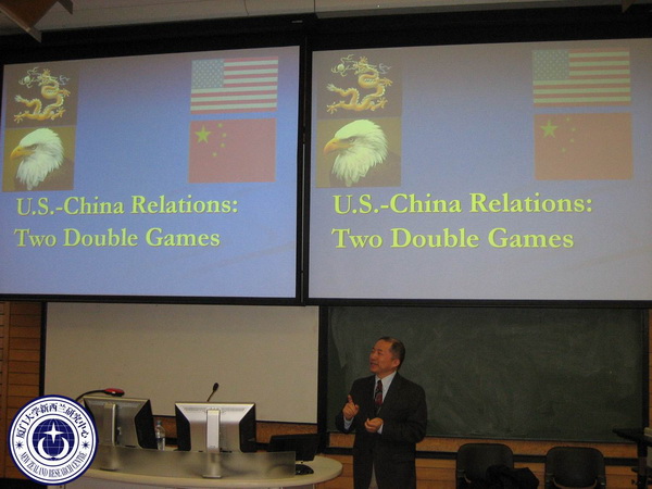 王飞凌教授从中美双边关系重要性、中美之间关系不对称性以及迅速变化、中美共同基础(动态稳定性)、中国之间不确定性因素以及中美国之间的双重博弈与双重筹码等五个方面对中美关系作了比较深入地分析。
