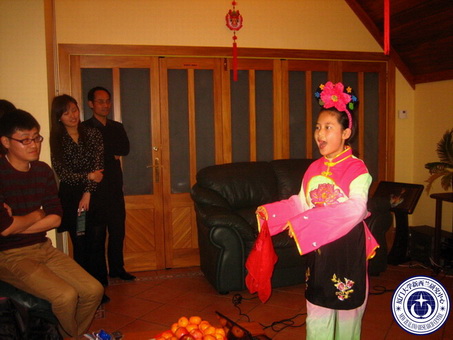 大家享用了中式美食后,还举行丰富多彩的联欢娱乐节目。有的在教育处唱K歌一展歌喉;有的兴致勃勃对弈。厦门大学-维多利亚大学孔子学院教师刘亚儒女儿刘灵子为大家即兴表演了一段陕西地方戏弦板腔《福寿图》,赢得了大家的好评。