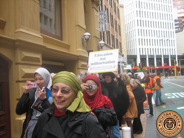 这次活动分两个阶段,第一个阶段于12:30开始,从议会大厦集合,经Lambton到市政府广场。一路上游行者高举各种标语,高呼 Welfare not Warfare, Education not Militarisation,到达在市政广场后举行演讲、诗歌朗读、市长演说以及和平签名活动,并将此签名提交到联合国妇女组织。