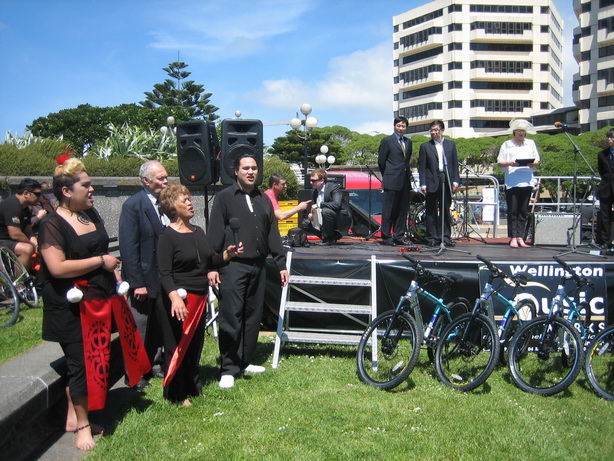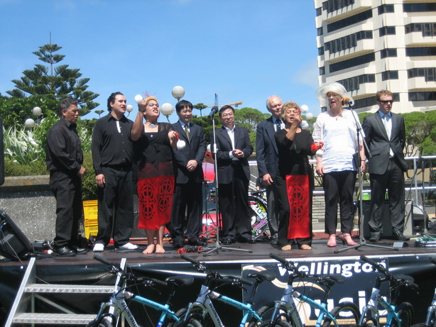 仪式宣布开始首先由当地毛利人艺术家为所捐赠的自行车作吉祥祈福仪式。接下来分别由西莉娅・布朗市长致感谢辞和北京市人大常委会主任杜德印发表讲话,最后由中国驻新西兰大使徐建国发表演讲。在他们讲话中间都穿插了毛利人的歌唱与舞蹈。