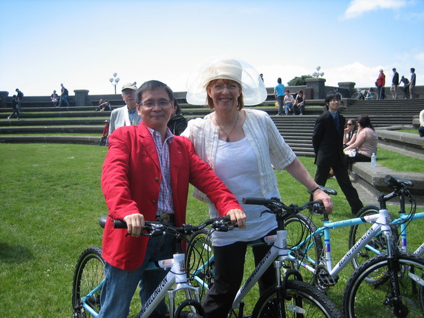 仪式结束后,徐建国大使还兴致勃勃地带领大家一起在美丽的草坪上骑上来自北京的山地车,最后宾主合影留念。