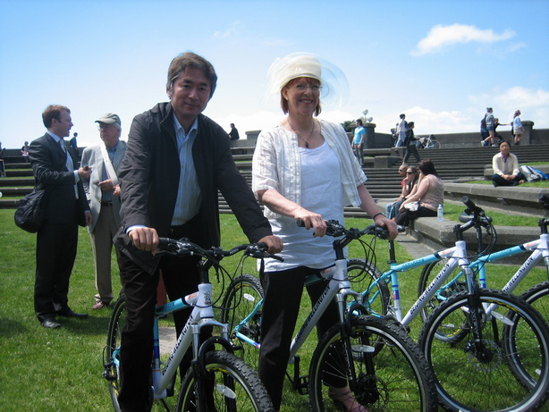 今天年7月21日,西莉娅・韦德―布朗市长代表团访问北京市,北京市为庆祝两市缔结“姐妹城市”五周年,决定赠送惠灵顿市100辆山地自行车,表示北京支持低碳环保健康生活的理念。实际上,西莉娅・韦德―布朗市是位绿党市长。这也是见证北京与惠灵顿两个首都城市之间的友谊,更象征了中新两国人民之间的友谊。