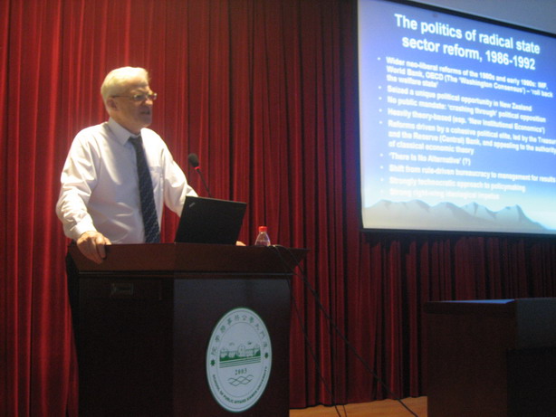 Gregory教授于当晚7:00在公共事务学院324学术报告厅进行了一场“新西兰政府部门改革的理论与实践:1986-2010”的学术讲座。