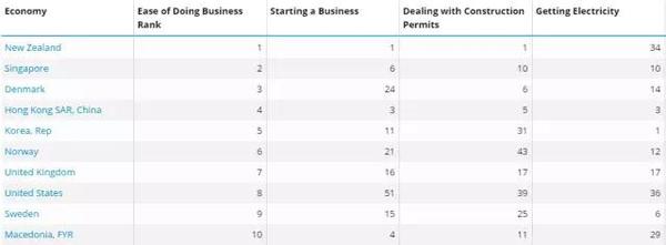 今天发布的2017年世界最容易做生意国家排名,据RE/MAX瑞麦地产了解,排名前十的国家或地区分别是:新西兰,新加坡,丹麦,中国香港,韩国,挪威,英国,美国,瑞典和马其顿。而中国仅仅排名第78名。