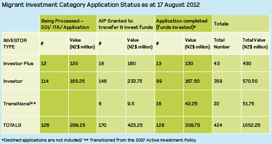 新西兰中华新闻网消息 NZ华新社奥克兰9月4日电; 近日,由新西兰百伦移民公司根据移民局统计记录显示,至2012年8月中旬,新西兰移民局一共批准了298个投资移民。